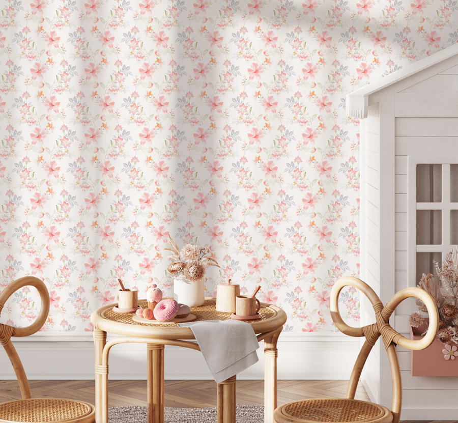 Little Boho Flowers in Soft Orange & Pink Wallpaper