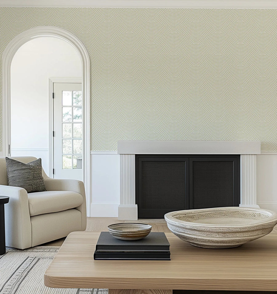 Mosaic Arches Wallpaper | 3 Colour Options — a geometric pattern in warm tones that adds visual structure, rhythm, and contemporary edge to the wall. The specific shapes and scale determine whether the room reads as Art Deco, Scandinavian, or contemporary minimalist — geometry is one of the most versatile pattern categories in design.