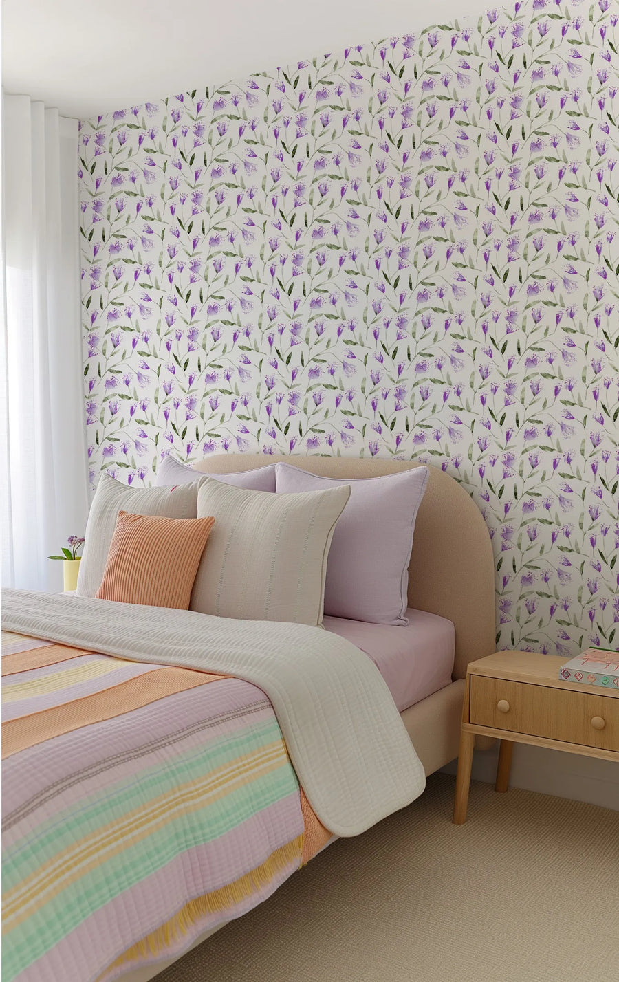 Violets Bloom Wallpaper — a floral pattern in warm tones celebrating botanical beauty with warmth and illustrated detail, bringing the garden indoors.
