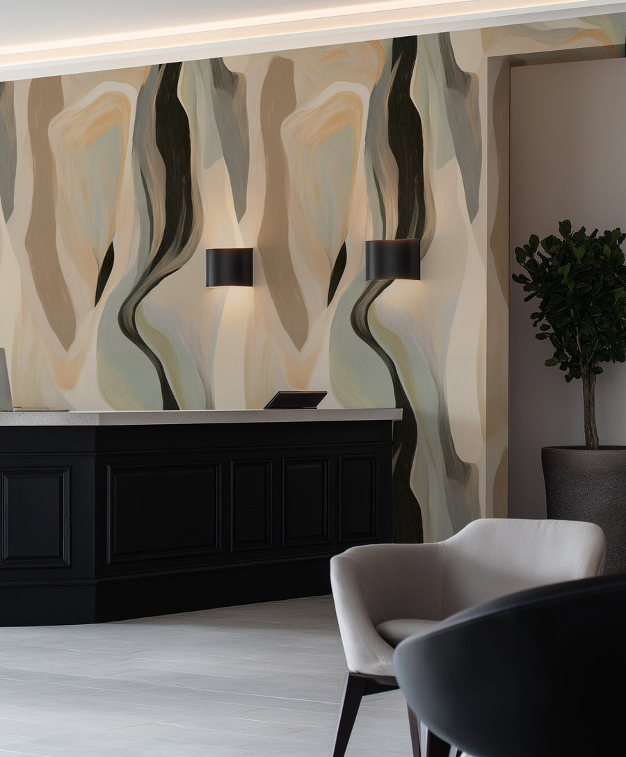Fira Abstract in Taupe & Black Commercial Vinyl Wallpaper