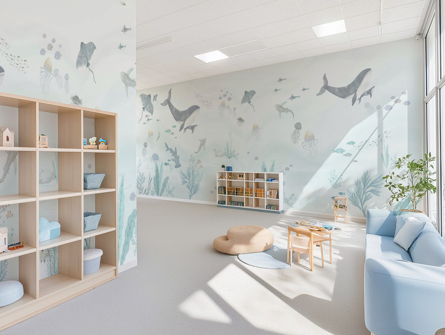 Under the Sea Mural in Blue & Grey Commercial Vinyl Wallcovering