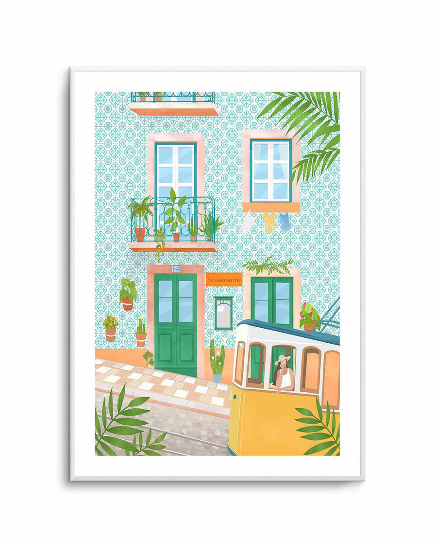 Charming in bedrooms, studies, or living areas, this print brings European wanderlust to contemporary eclectic, travel-inspired, or global modern interiors with authentic cultural character. The vintage tram and architectural details work beautifully with collected travel pieces, ceramic accents, and warm Mediterranean palettes. Oak frame to warm the golden tones, White frame for clean European gallery styling.