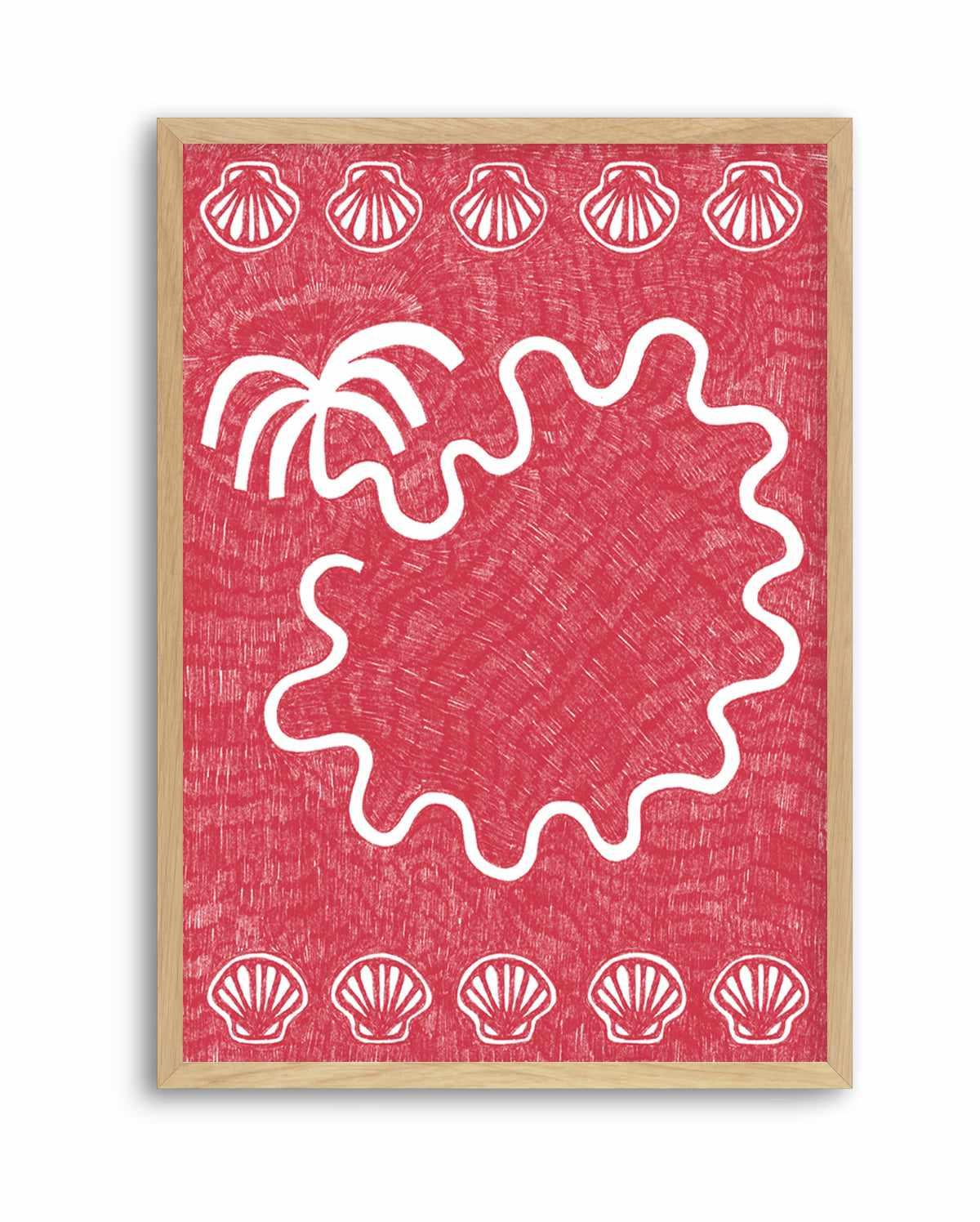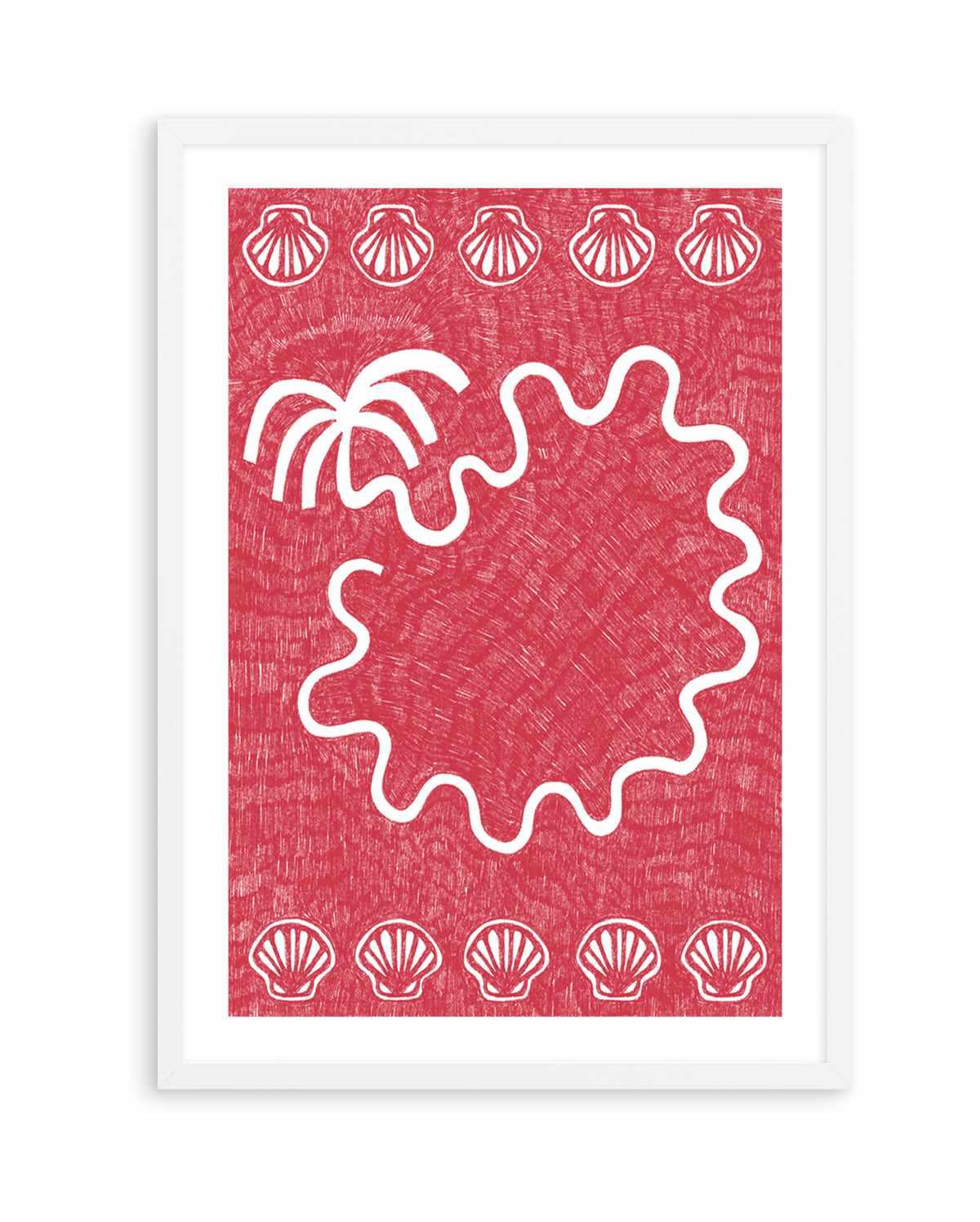 Shells And Palm Tree Coral Red by Shatha Al Dafai | Art Print
